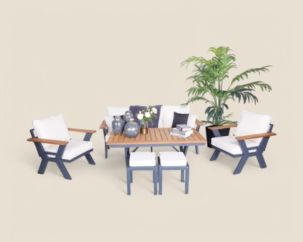 Alüminyum Petek Oturma Grubu, estetik tasarımıyla modern yaşam alanlarınıza şıklık ve konforu bir arada sunan üstün kalitede bir tercihtir. Her detayı özenle düşünülmüş bu oturma grubu, hem göz alıcı bir estetiğe sahip hem de fonksiyonellik açısından üst düzeyde performans sunmaktadır.