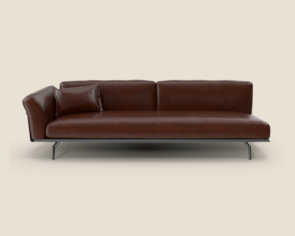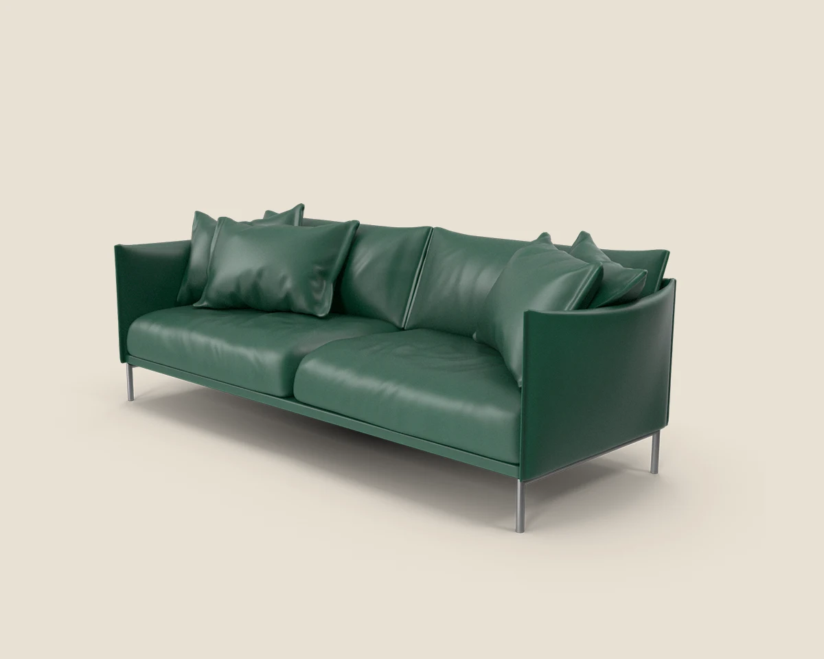 The Linear Sofa offers modern elegance with its sleek design, premium leather upholstery, and minimalist metal legs, making it a perfect fit for any contemporary space.